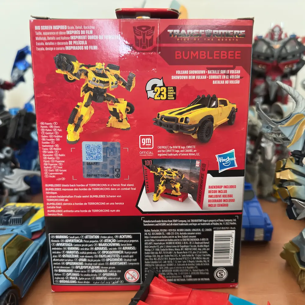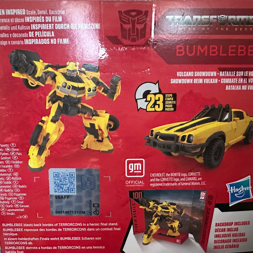 Transformers Studio Series 100 Bumblebee figürü kalıp anlamında en başarılı Bumblebee figürlerinden biri olup Rise of the Beast film oyuncaklarının en beğenilen modellerinden biridir. Oldukça detaylı ve dönüşüm aşamalarına sahip bir figürdür. 23 Adımda robot modundan araç moduna dönüşmektedir.
