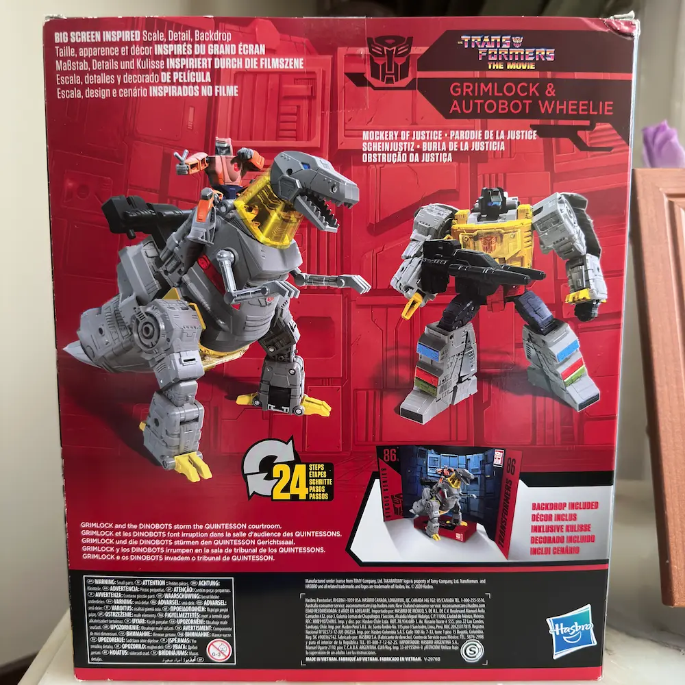 Transformers Studio Series 86 06 Grimlock and Autobot Wheele figürü değeri en çok yükselen Transformers Studio Serisi Lider figürlerinden olup 86 Movie filmindeki versiyondur. 24 Adımda T.Rex modundan Robot moduna dönüşmektedir. Koleksiyon değeri yüksek bir figürdür ve oldukça detaylı dönüşüm aşamalarına sahip bir figürdür. Dinobot figür koleksiyonunuz için harika bir figür olacaktır.